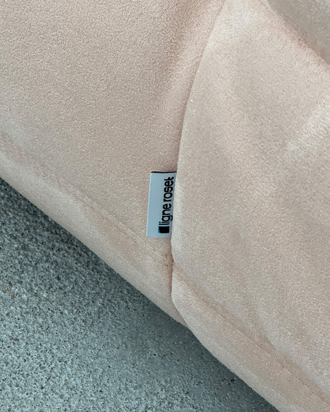 This three-seater is reupholstered in baby pink alcantara, accentuating its quilted contours and bringing a playful yet sophisticated character to any interior. Part of a modular series, the Togo is available in multiple sizes and forms, allowing different elements to be combined for versatile configurations tailored to any living space.