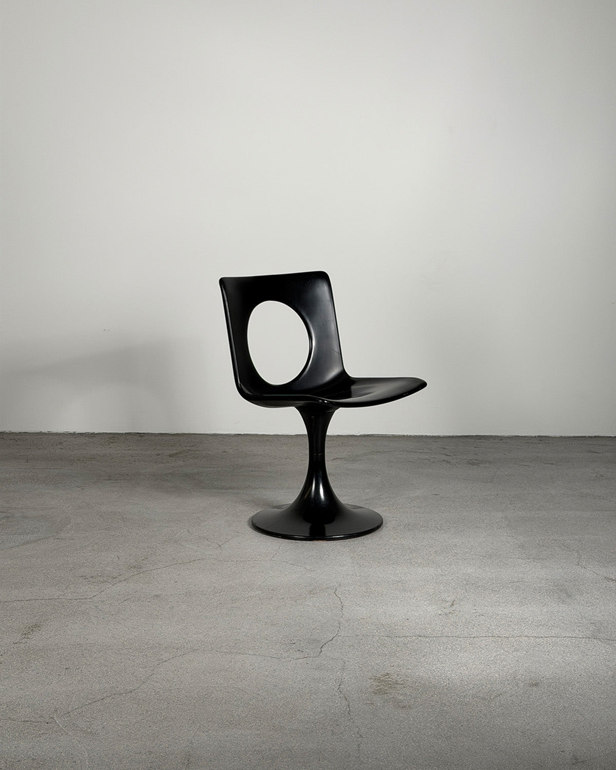 Designed in 1971 by Finnish designer Carl Gustaf Hiort af Ornäs, the 'Afo-Seat 2001' exemplifies his forward-thinking approach to form and material. Crafted in molded fiberglass, the chair’s sculptural shell features a distinctive circular opening in the backrest, balancing lightness with a bold modernist character.